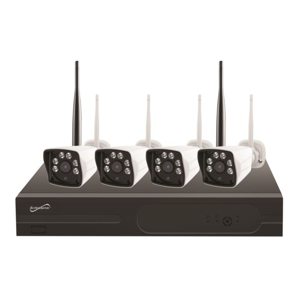 Add more security monitoring to your home and gain peace of mind. 1/3" Progressive scan image sensor. 1920 x 1080 Camera resolution with 4mm lenses. Records in 729p 960p and 1080p resolution. 4-Channel video network. Manage video via smartphone. Uses LAN & WAN connection. HDD Drive: 1 SATA connection and up to 6TB capacity. Memory NOT included. Ethernet port. USB 2.0 Input. 3.5 Auxiliary input. Includes: NVR System and Power supply. 4 IP Cameras with power supplies. Antenna extension cord.